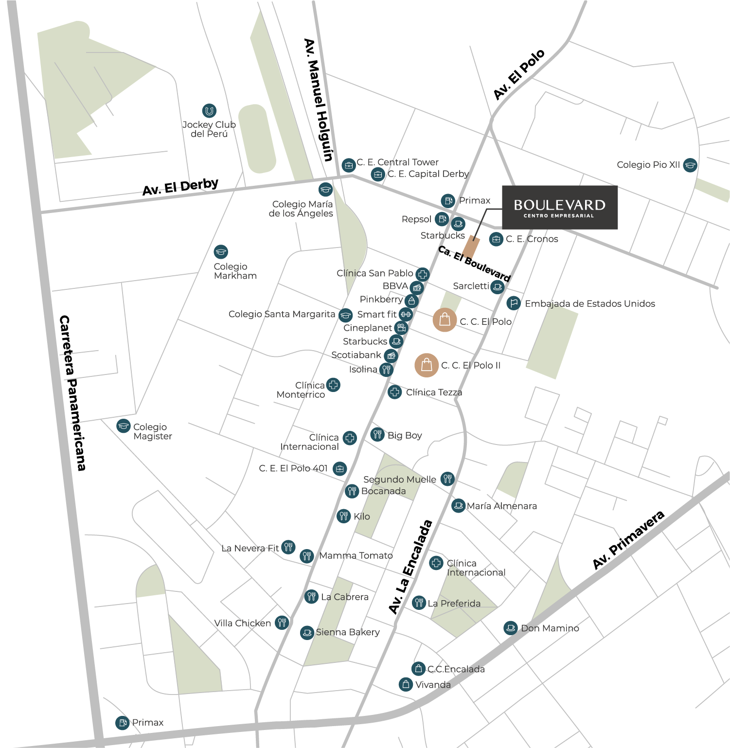 Boulevard Centro Empresarial se encuentra en una de las zonas empresariales más consolidadas de Lima, con acceso inmediato a la Panamericana y la Av. Javier Prado. Su conectividad garantiza desplazamientos ágiles y cercanía a servicios esenciales.